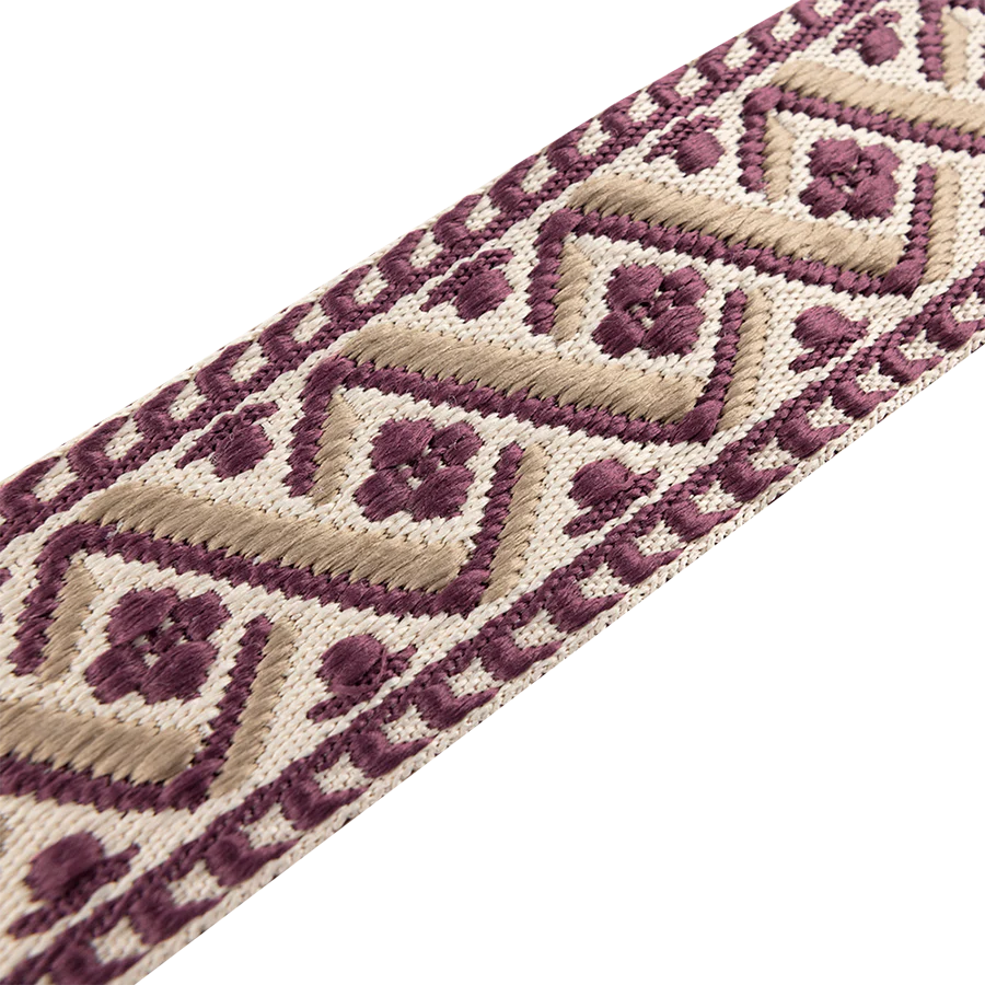 Add a touch of Southwestern charm to your purse with our maroon and cream embroidered purse strap. Perfect for adding a pop of color to any outfit, this strap is both stylish and functional. Show off your unique style and make a statement with this one-of-a-kind accessory.