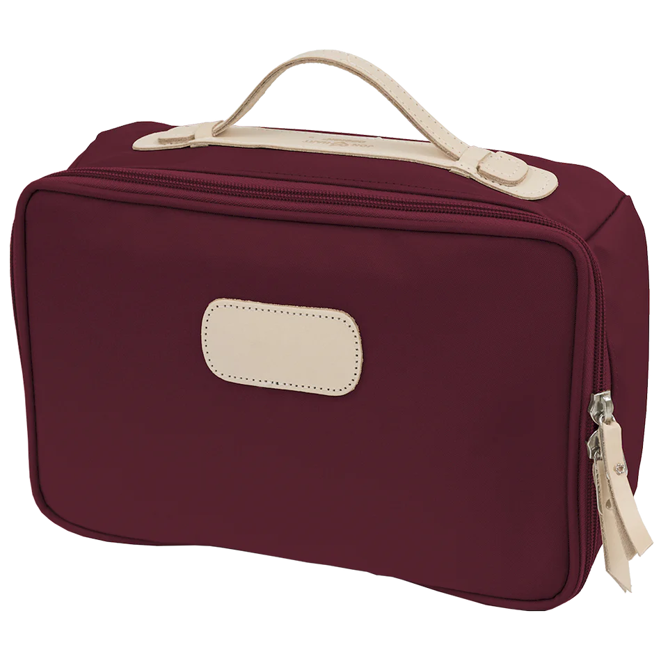The Jon Hart Large Travel Kit is your essential companion for any journey. This spacious organizer features multiple compartments designed to keep toiletries, accessories, and personal items neatly separated and easily accessible. Built with durable materials and thoughtful construction, it withstands the rigors of travel while maintaining its shape. Perfect for business trips, vacations, or weekend getaways, this kit streamlines packing and keeps everything you need within reach. Ideal for travelers who value organization and quality craftsmanship.