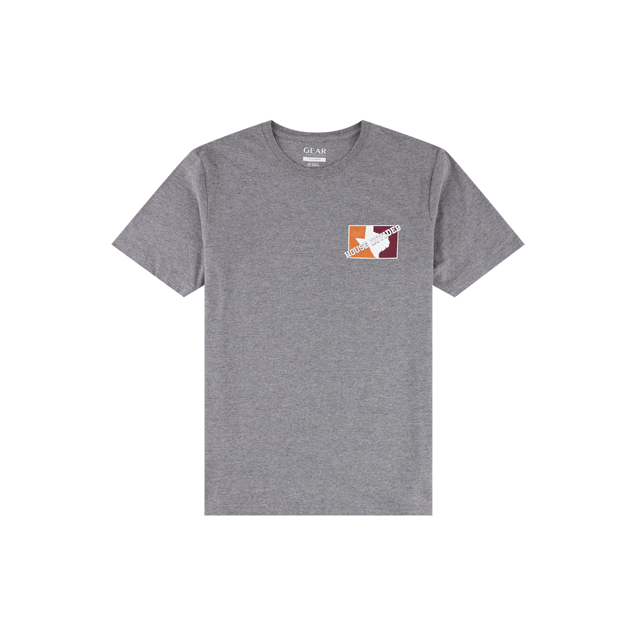 Gear up for the big game with our Texas A&M vs Texas House Divided t-shirt! This gray tee features a bold "House Divided" design across the Lonestar state, with the ATM and Texas logos on the back. Perfect for passionate fans and families!