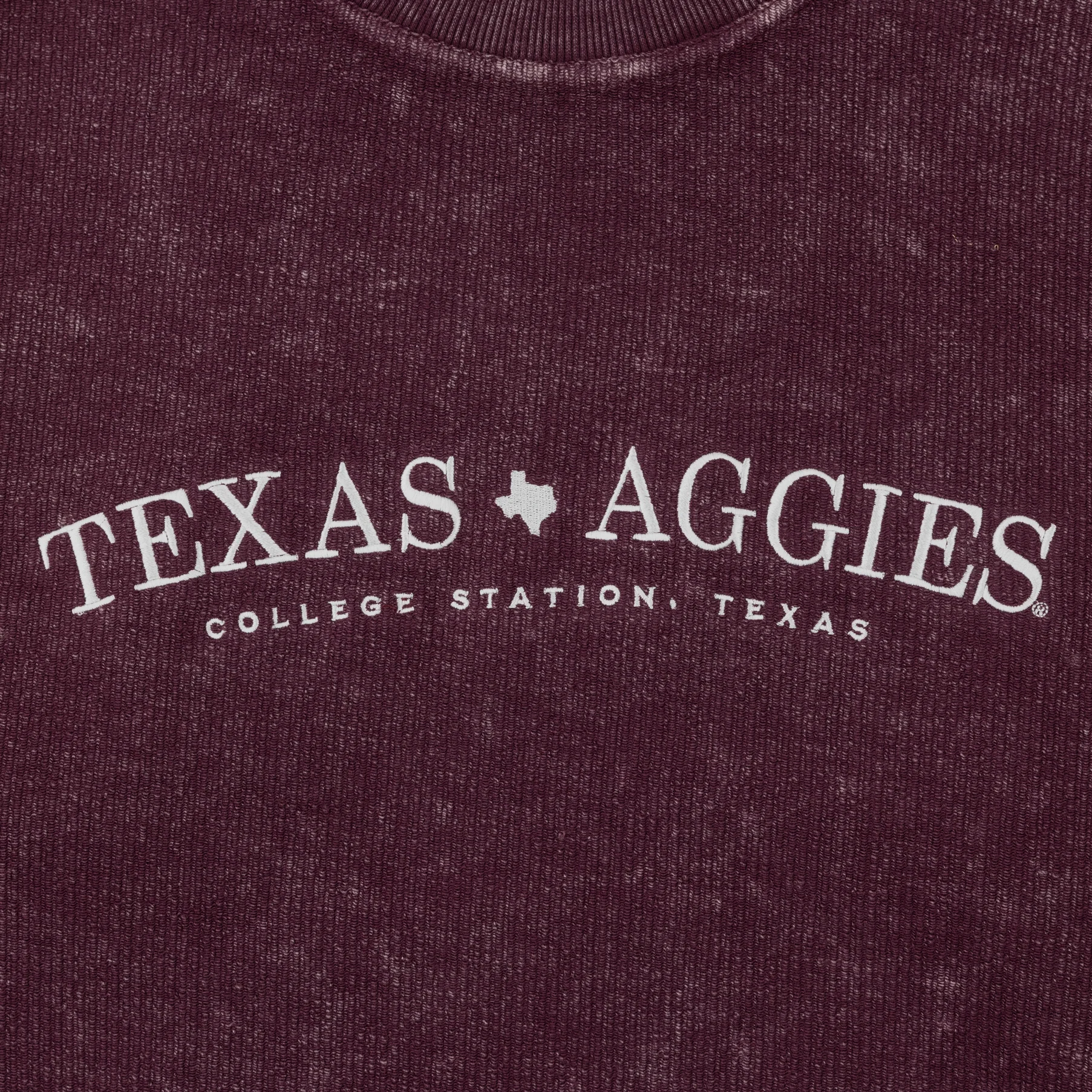 Get ready to show off your Aggie pride in style with our Texas Aggies Simple Embroidered Design Corduroy Pullover! This maroon pullover features a crisp white embroidered "Texas Aggies" design, perfect for any fan. Made of soft corduroy, it's not only stylish but also comfortable to wear. Go Aggies!